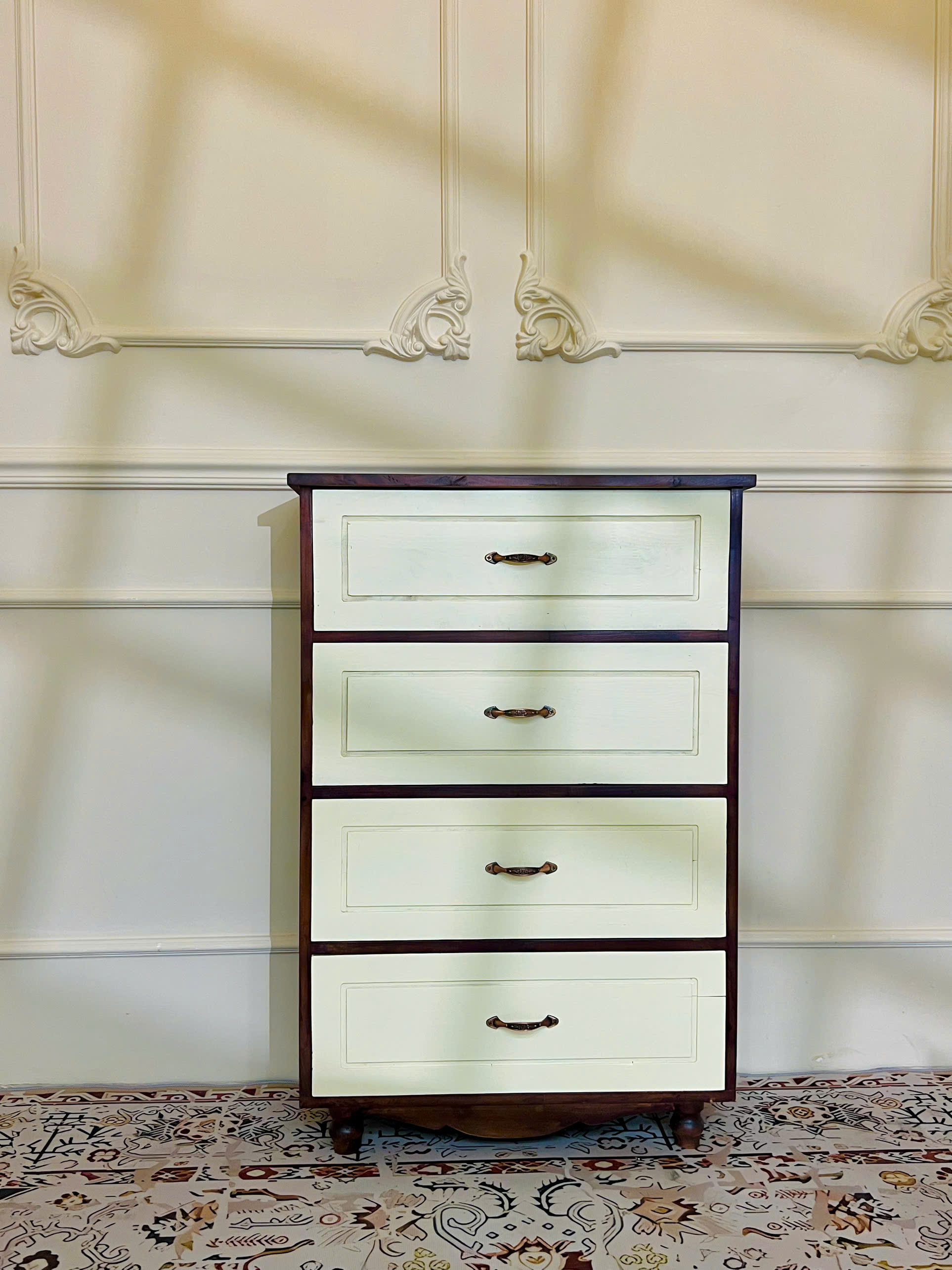 Tủ ngăn kéo trắng mặt đen